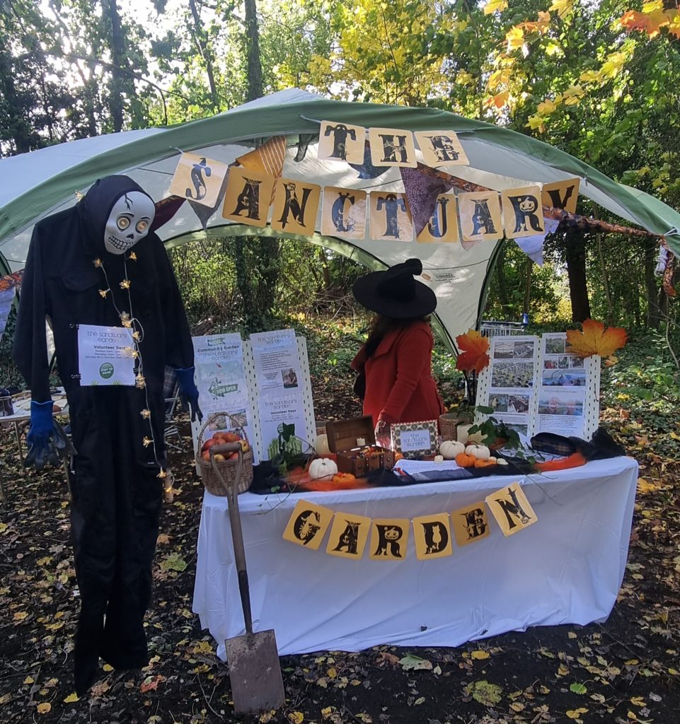 The Sanctuary Garden had a decorated pop up stand highlighting volunteering opportunities the garden, plans for 2026 and giving away apples, pumpkins and treats!