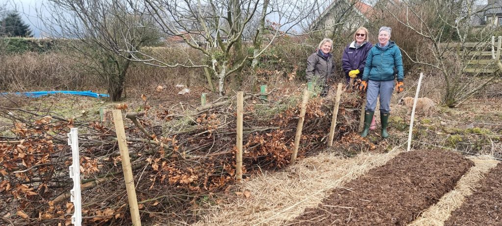 Following a visit to “Keeping the plot” flower garden in East Neuk, a dead hedge has been installed by volunteers to act as an eco windbreak, slowing down the wind and promoting growth while providing a home for insects, birds and bees.