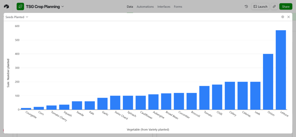 Using Airtable, we are able to check how many seeds were planted last year compared to this year. It is remarkable that we have planted 3000 seeds in 2026 so far, and 3100 during the same time in 2025. I just imagined that we were behind the curve.
